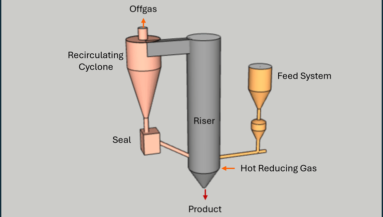 Circored™ (Metso): The most established commercial CFB technology, featuring a two-stage reactor configuration with typical plant capacities of 1.25 million tonnes per year. The process can operate on natural gas or 100% hydrogen, providing flexibility during the energy transition.